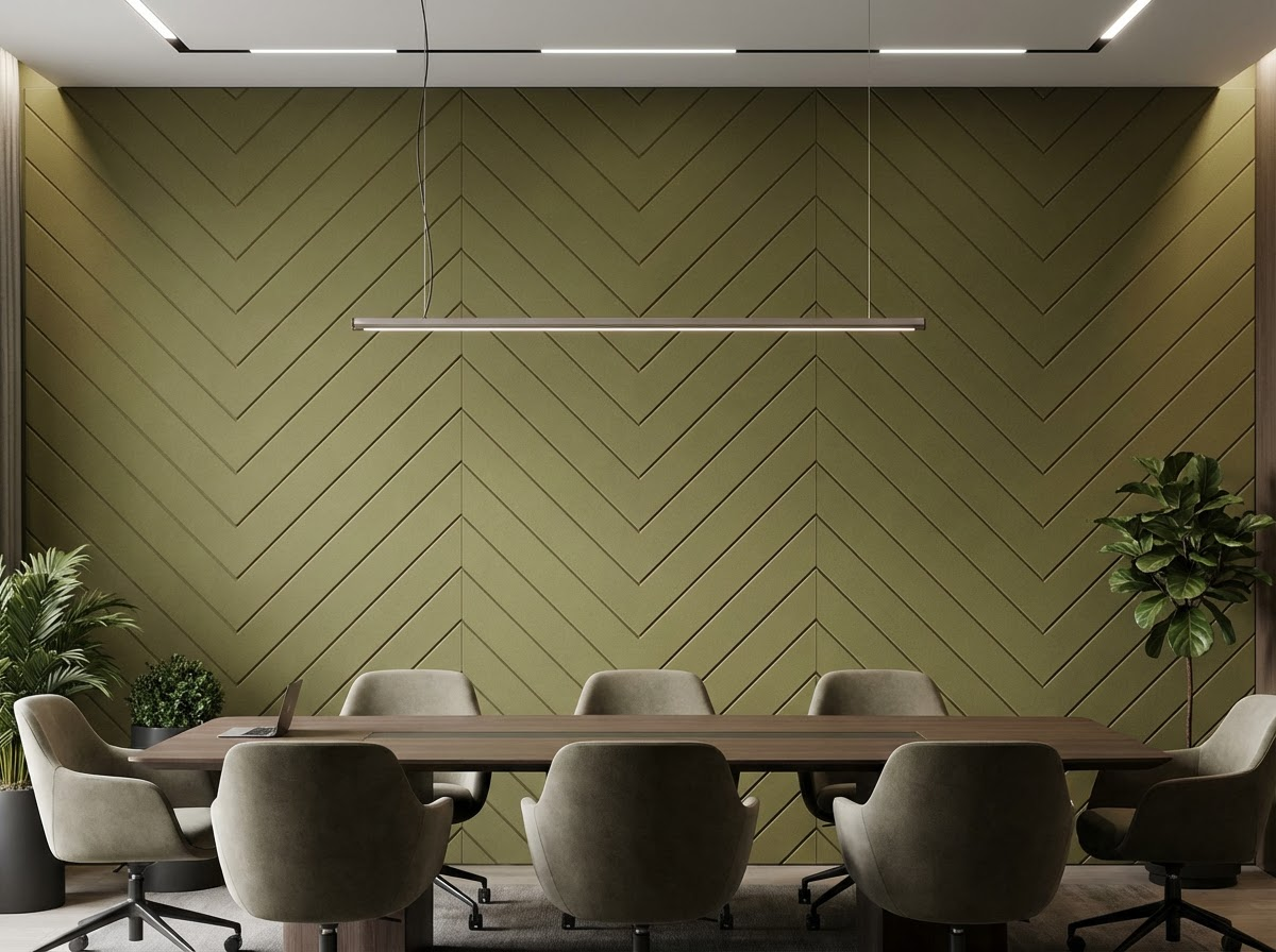 Elementos de bisel e corte para personalização técnica e estética de soluções acústicas em PET.
